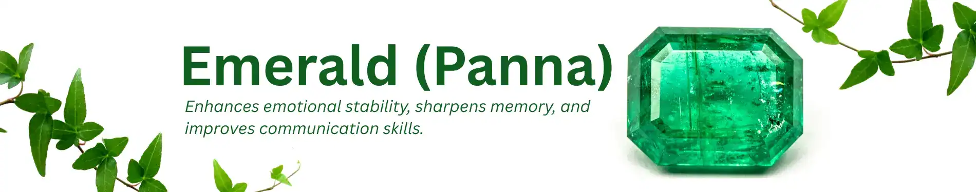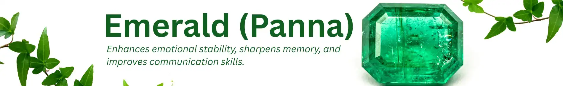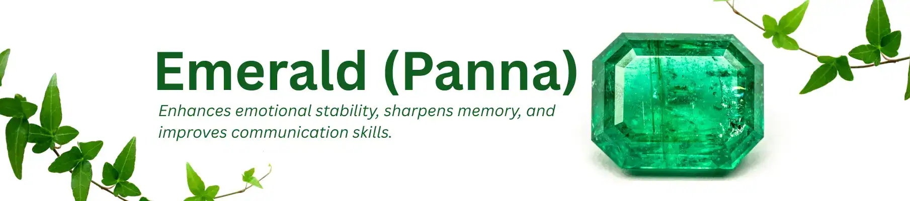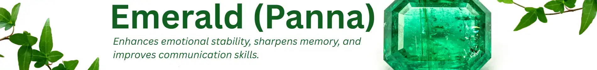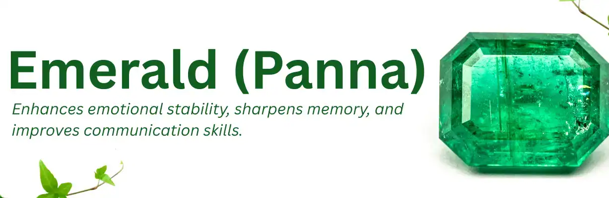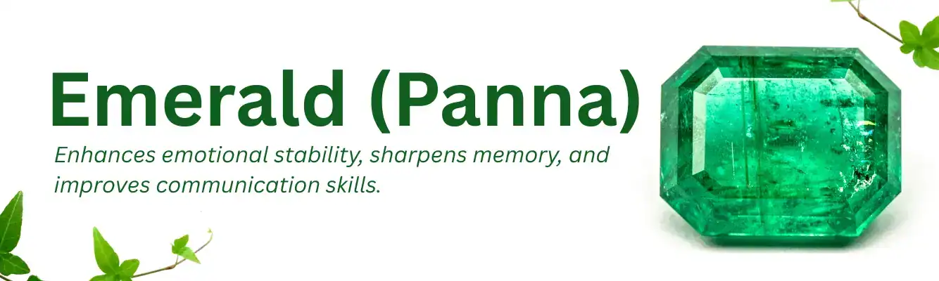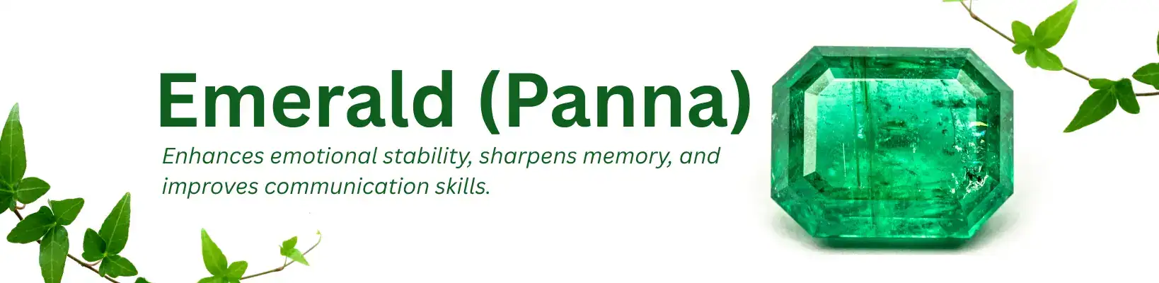 Emerald, or Panna, is a green gemstone governed by Mercury (Budha Graha)—the planet of intellect, communication, logic, and analytical thinking. In Vedic astrology, Emerald is prescribed to individuals who need better mental clarity, speech refinement, and emotional resilience, especially if Mercury is weak or retrograde in their horoscope.