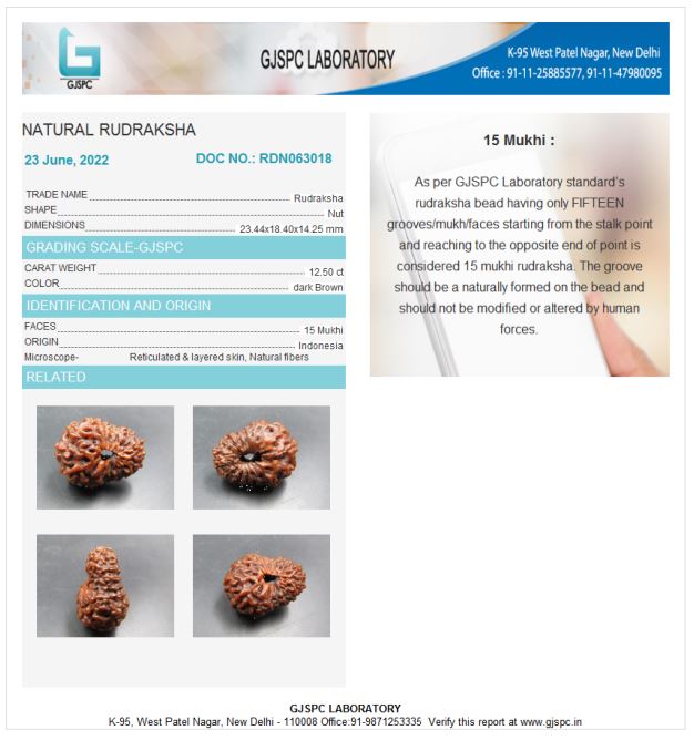 15 Mukhi Rudraksha – Indonesia Origin The 15 Mukhi Rudraksha pacifies malefic Mercury (Budha) and activates the Anahata (Heart) Chakra, the seat of emotions. It enhances memory, intuition, and communication skills, ensuring success in examinations and life. This bead attracts positive influences and blocks negative ones, promoting emotional stability and happiness. Blessed by Devi Shodashi, it is also effective in managing heart, lung, and liver-related diseases.