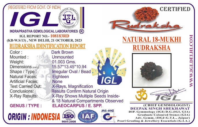Order genuine, certified Indonesian 18 Mukhi Rudraksha at www.santoshsharmaa.com for spiritual authenticity and business success.