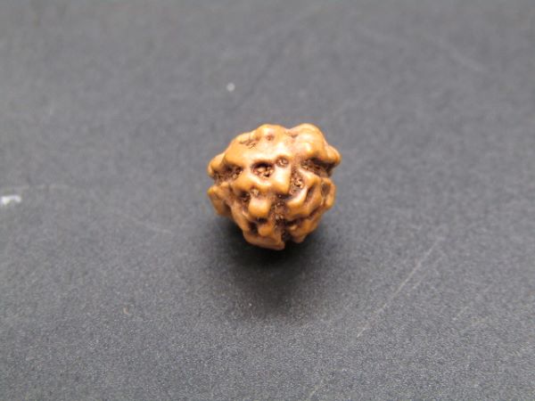 • Smaller and oval-shaped bead with three fine, visible natural mukhi lines.