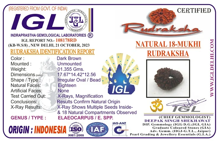 Dr. Sharmaa explains that just as Indra, the king of the heavens, enjoys the pleasures of both the material and spiritual realms, this mala is a symbolic invitation to lead a life of wholeness, fulfillment, and cosmic balance. Each Rudraksha bead in this mala is linked to a specific graha (planet) or deity, contributing its unique vibrational frequency: