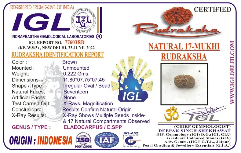Get authentic and lab-certified 17 Mukhi Indonesia Rudraksha beads at www.santoshsharmaa.com. Every bead is quality-verified and comes with a certificate of authenticity.